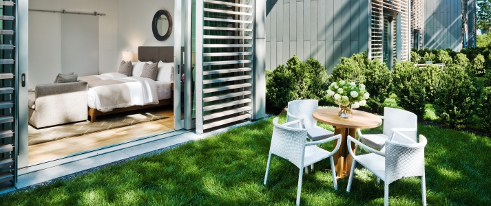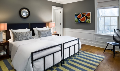 While varied in location and aesthetic, accommodations at Hamptons luxury hotel Topping Rose House are equally elegant. All accommodations feature plush bedding with linen by Frette, bathtowels by Matouk, bathrobes by Chadsworth & Haig, and bath amenities by Naturopathica. Each room is anchored by Madeline Weinrib's uniquely designed rugs.  Customizable minibars give guests the luxury of their own private pantry, while flat-screen televisions and iPod docks ensure access to the latest movies and music. Additionally, all 22-rooms include their own luxury private bath, daily house-housekeeping services, and 24-hour room service.